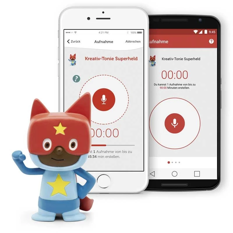 Mit der dazugehörigen, kostenlosen Smartphone-App können eigene Sprachaufnahmen aufgezeichnet und dem Kreativ-Tonie zugewiesen werden.